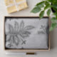 Dark Grey Stencil Flowers on White Decoupage Tissue Paper