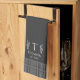 stylish grey black tartan,rustic grey custom monogram,personalised customised kitchen towel,personal name check pattern,scottish checked chequered dishcloth,add your own text,dark charcoal family surname,fancy plaid initialled initial,classic traditional scotland chef,british uk countryside cook