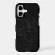 This phone case features a line art drawing of tulips in dark grey on a black background with and a personalized name. Original art from Dogwood & Thistle.