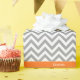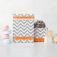 Dark Grey and White Large Chevron Zig Zag Pattern, Pumpkin Orange Ribbon Name Monogram Label