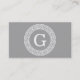 Dark Grey Wht Greek Key Rnd Frame Initial Monogram Business Card