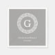 Dark Grey Wht Greek Key Rnd Frame Initial Monogram Napkin