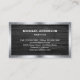 Professional roofer business card featuring brushed steel accents with modern typography. Add your name and contact details to make a lasting first impression.