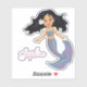 A cute dark haired mermaid with a pink and grey tail and your personal name to decorate and personalise your stationary and books.