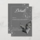 Step into the enchanting realm of our Halloween wedding details card, where love meets glamourous mystery in a spellbinding celebration. Against a backdrop of bewitching charcoal grey, this design sets a dazzling yet dark tone for your special day. A charcoal bat with wings spread sits atop your wedding details, surrounded by a cluster of sparkling loose diamonds, adding glam to the dark beauty of the design. Capture the spirit of Halloween and set the stage for a wedding that's as hauntingly beautiful as it is unforgettable. Choose our Halloween wedding invitation suite to embark on a journey into the shadows and create memories that will last a lifetime. Created by Simply Farmhouse Press.