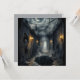 A dark fantasy artwork featuring a haunted stone corridor, glowing lanterns, a mysterious deep hole, and a surreal moonlit sky. Perfect for fans of gothic art, horror themes, and surreal dreamlike scenes. This atmospheric design adds a dramatic and eerie touch to any product.