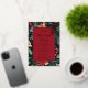 Celebrate the holidays with a touch of timeless elegance. This exquisite corner foil juniper and berries floral design overlay, combined with the dark Christmas red and evergreen holiday floral background, captures the beauty and grace of the season. The real gold foil script and serif text add a touch of opulence.