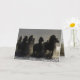 These Camargue horses run in the early morning and are silhouetted against the sky in Camargue, France. There is an additional image of these horses inside the card. Both images are by Carol Walker.