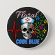 Dark Humour "Floral Code Blue" Med Skull Nurse 7.5 Cm Round Badge