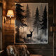 A majestic stag stands peacefully in an atmospheric misty forest, surrounded by towering pine trees that fade into ethereal fog. This dark ink wash painting captures the serene beauty of wilderness with flowing watercolor textures and monochrome black-grey tones. The artistic composition features dramatic depth as layers of evergreen silhouettes create a moody woodland scene perfect for nature enthusiasts. Ideal gift for hikers, camping lovers, wildlife photographers, and anyone who finds peace in the forest. This atmospheric artwork brings the tranquil spirit of the wild into any space. Perfect for cabin decor, rustic home aesthetic, dark academia style, or as a meaningful present for outdoor adventurers, nature lovers.The flowing mist and peaceful deer create a meditative ambiance ideal for bedrooms, living rooms, offices, or meditation spaces.