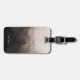 Personalised luggage tag featuring your name on top of a dark black and ivory coloured watercolor background.