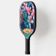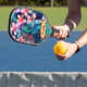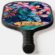 Custom pickleball paddle features beautiful island / tropical flowers and leaves with customisable text to add name or monogram.