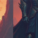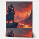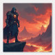 A dark knight — a mysterious fantasy warrior from the burning lands, surrounded by lava and a hellfire landscape. This armoured fighter is a true skull warrior, reigning over an epic fantasy and fantasy realm. Full of evil and power, he roams a land filled with fire and volcanic mountains.