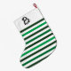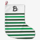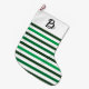 Dark Light Green Stripes Monogram Christmas Large Christmas Stocking
