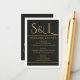 Share all your wedding details in dramatic style with this ultra-luxurious black and gold enclosure card. Featuring the same elegant oversized monogram in antique gold on deep matte black as the full Studio Blanc Dark Luxe Monogram Wedding Suite, this card keeps all your important information beautifully on-brand.