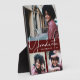 Your favourite photos, the word Graduate, your name and graduation year in elegant white text on dark maroon, this frameless photo plaque with a built-in easel is a great keepsake to remember your graduate's special milestone. **TIP: Upload all horizontal photos for best results. Click on Customise further link to change the colour, fonts or layout using our design tools. Matching invitations, save the dates and more in our store.
