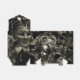Black and white Gothic image of a masquerade collection on tent favour boxes.