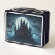 Dark, mediaeval castle, bats, & pumpkins metal lunch box