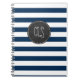 Dark Midnight Blue Stripes; Retro Chalkboard Notebook