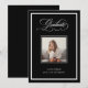 This formal and modern class of 2026 graduation announcement features a dark, black background with a classic white frame. A photo of the grad goes in the center, and elegant fancy calligraphy script says "graduate" at the top. A luxe, sophisticated look for the adult grad.