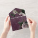 AVAILABLE WITH OR WITHOUT A QR CODE TO SCAN OR WITH OR WITHOUT DINNER OPTIONS. This all in one wedding invitation design features a floral arrangement of soft blush pink roses and white and black anome flowers with a dark burgundy wine and white distressed beige background. Classy, dark, and modern. Created by Simply Farmhouse Press.