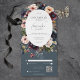 Dark Moody Blue Oval Floral Frame QR Code All In One Invitation