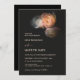 This dark moody wedding invitation features photo realistic 3D blush apricot roses on a black background.
