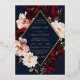 Personalize this elegant wedding real foil invitation easily and quickly. Simply click the Edit Using Design Tools button to edit the text, change fonts and fonts colors. Featuring beautiful realistic burgundy, blush peonies and navy blue anemone flowers against a dark moody navy blue background. Matching items available in store. (c) Somerset Fine Paperie