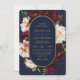 This stunning navy blue and burgundy floral wedding invitation exudes timeless elegance and modern romance. Designed with lush watercolor peonies, blush roses, and deep wine blooms encircling a classic gold-framed oval, it creates a luxurious contrast against a rich navy background. Perfect for fall, winter, or evening weddings, this design combines sophistication and warmth for a truly memorable celebration.
