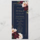 Personalise this elegant wedding slim program card easily and quickly. Simply click the Edit Using Design Tools button to edit the text, change font style, colour and size. Featuring beautiful realistic burgundy, blush peony flowers against a dark navy blue background. Personalise this double sided program card with your order of events and wedding party list. Matching items available in store. (c) Somerset Fine Paperie