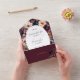 AVAILABLE WITH A QR CODE OR WITH OR WITHOUT DINNER SELECTION OPTIONS. Indulge in the captivating allure of our dark and moody burgundy wedding invitation, where sophistication meets romance in a harmonious blend of colour and elegance. Against a backdrop of rich burgundy, this invitation sets a dramatic tone that speaks volumes about your unique love story. Nestled within a white oval text box, your wedding details take centre stage, surrounded by a lush arrangement of watercolor poppies, zinnias, and other flowers in shades of navy blue, burgundy, soft blush, and gold, complemented by dark sage green foliage. Each petal and leaf whispers tales of passion and enchantment, setting the stage for a celebration that's as memorable as it is magical. Invite your guests to share in the splendour of your love with an invitation that reflects the depth of your connection. Created by Simply Farmhouse Press.