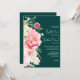 Dark Moody Emerald Blush Floral Stylish Script Invitation