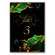 A modern ink washed wedding table number with emerald green and liquid gold and bronze on a black background. This elegant wedding table number card features an artistic wash of colourful inks in emerald green and golden bronze. Easily edit the template using Zazzle's customisation tool. Please contact us if you require assistance via Zazzle Chat. Dark Moody Emerald Bronze Abstract Table Number.