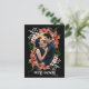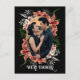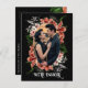 Announce your engagement with a striking, artfully crafted card that perfectly captures your love story. The front showcases your photo framed by dramatic florals in lush, deep tones against a dark, moody backdrop, blending elegance with an edge. The reverse has a customisable mailing name and address. This design is ideal for couples who want an announcement that feels as captivating and unforgettable as their own romance.