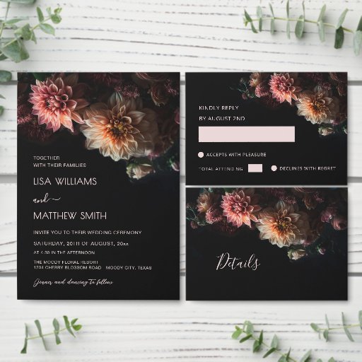 Dark Moody Floral Chrysanthemum RSVP Card