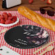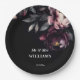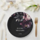 Dark moody noir elegant gothic all in one wedding personalised tableware editable template plates, black burgundy peonies on dark background wedding party plates