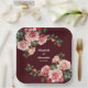 Dark moody pink and red roses maroon wedding paper plate