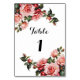 Elegant pretty red and pink white rose floral cottage core wedding table number
