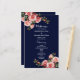 Dark moody pink red roses navy wedding program