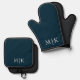 Dark Navy Blue and White | Modern Monogram Oven Mitt & Pot Holder Set