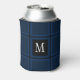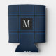 Dark Navy Blue Custom Single Initial Striped Can Cooler