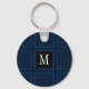 Dark Navy Blue Custom Single Initial Striped Key Ring