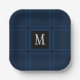Dark Navy Blue Custom Single Initial Striped Paper Plate