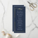 This dark navy blue menu with a delicate gold frame and white script is simply elegant. Perfect for any occasion ... all fields can be customized for your luncheon or dinner. Optional names on back for weddings and anniversaries