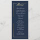 This dark navy blue menu with a delicate gold frame and white script is simply elegant. Perfect for any occasion ... all fields can be customised for your luncheon or dinner. Optional names on back for weddings and anniversaries