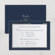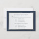 This navy script on white with a gold and navy blue border is an elegant rsvp card and menu selection card. The back has a navy background with your names and a gold ampersand. Can be used for weddings, vow renewals or anniversaries