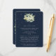 A dark navy flat enclosure card for wedding receptions that are held at a different venue than the wedding ceremony. The card features an elegant bouquet/posy of hand painted snowberries and eucalyptus on the front and a wreath on the back of the card. All text is fully editable and the scattered dots on the front and back can be deleted before ordering if you would prefer. This card is available with alternative botanical designs, in a landscape format, and in different colours. Please view the Collection in my store to see all options and coordinating items.