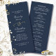 This simple white script print on a dark navy blue background with a gold ampersand is an elegant program for your wedding day. Personalise all the information including ceremony details and attendants on the back with the same script font