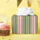 This wrapping paper design features a dark olive green and light pink coloured stripes pattern. Wrapping paper like this might be used when wrapping gifts being given to celebrate a birthday, a wedding, an anniversary, or some other event.