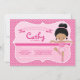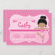 Love ballet and throwing a ballerina birthday celebration? Invite friends and family with this cute pink Ballerina Birthday Invitation featuring a ballerina with a dark skin tone. This invitation also includes a patterned back side.